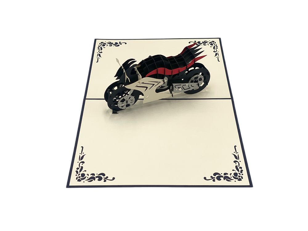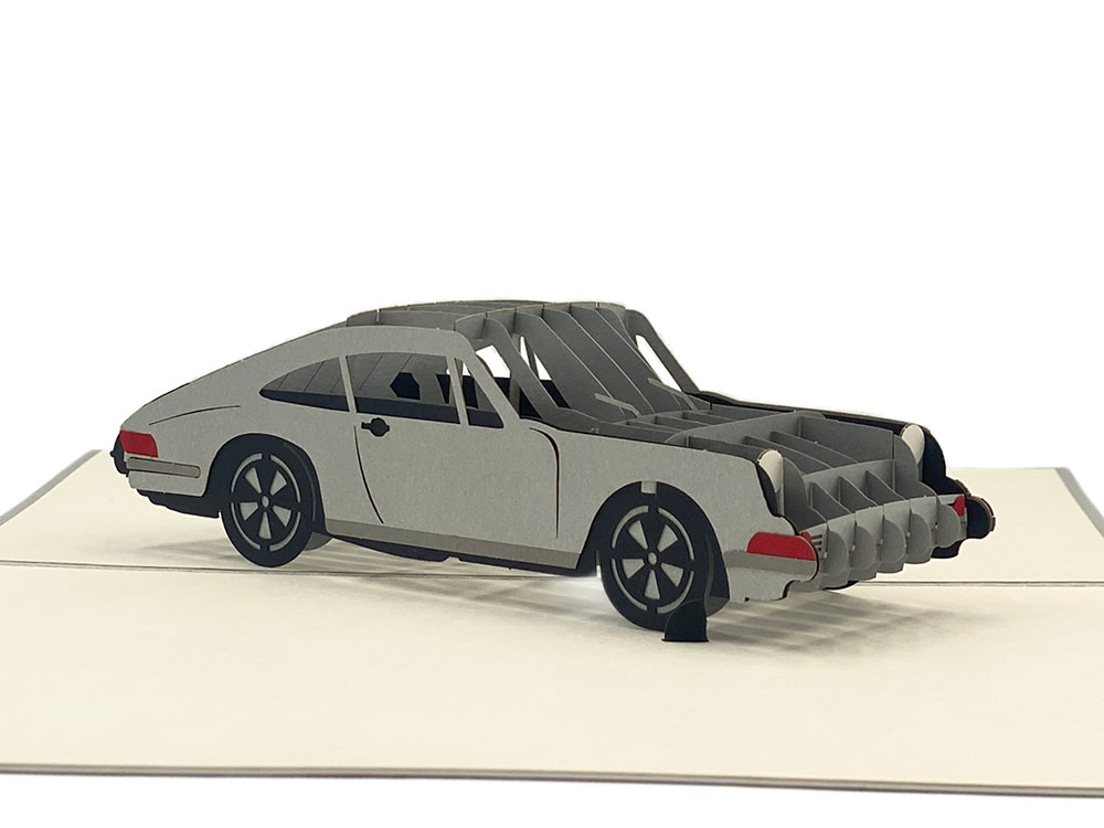 Beim Aufklappen dieser 3D Karte verzaubert Sie ein filigran gearbeitetes Sportauto, ein echter Klassiker.