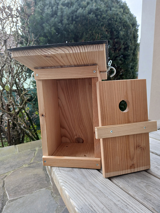Hochwertiger Vogelnistkasten aus heimischen Lärchenholz, liebevolle Handarbeit.